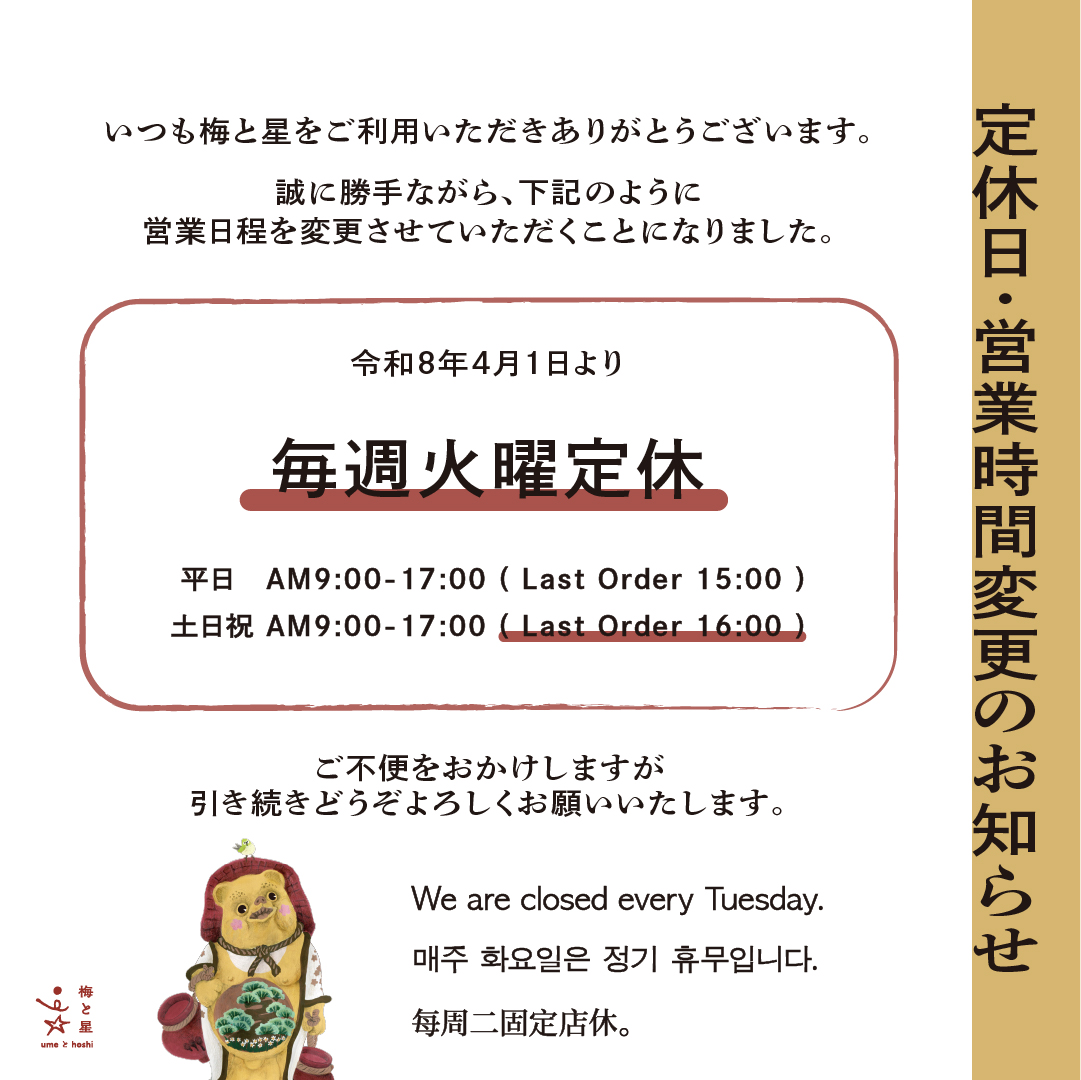 9:00-17:00/月曜定休(祝日の場合は翌日休み)